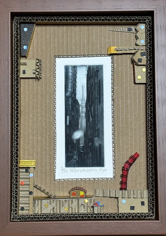 烏丸京作品 / 銅版画「浅草からみたスカイツリー」/ 額付