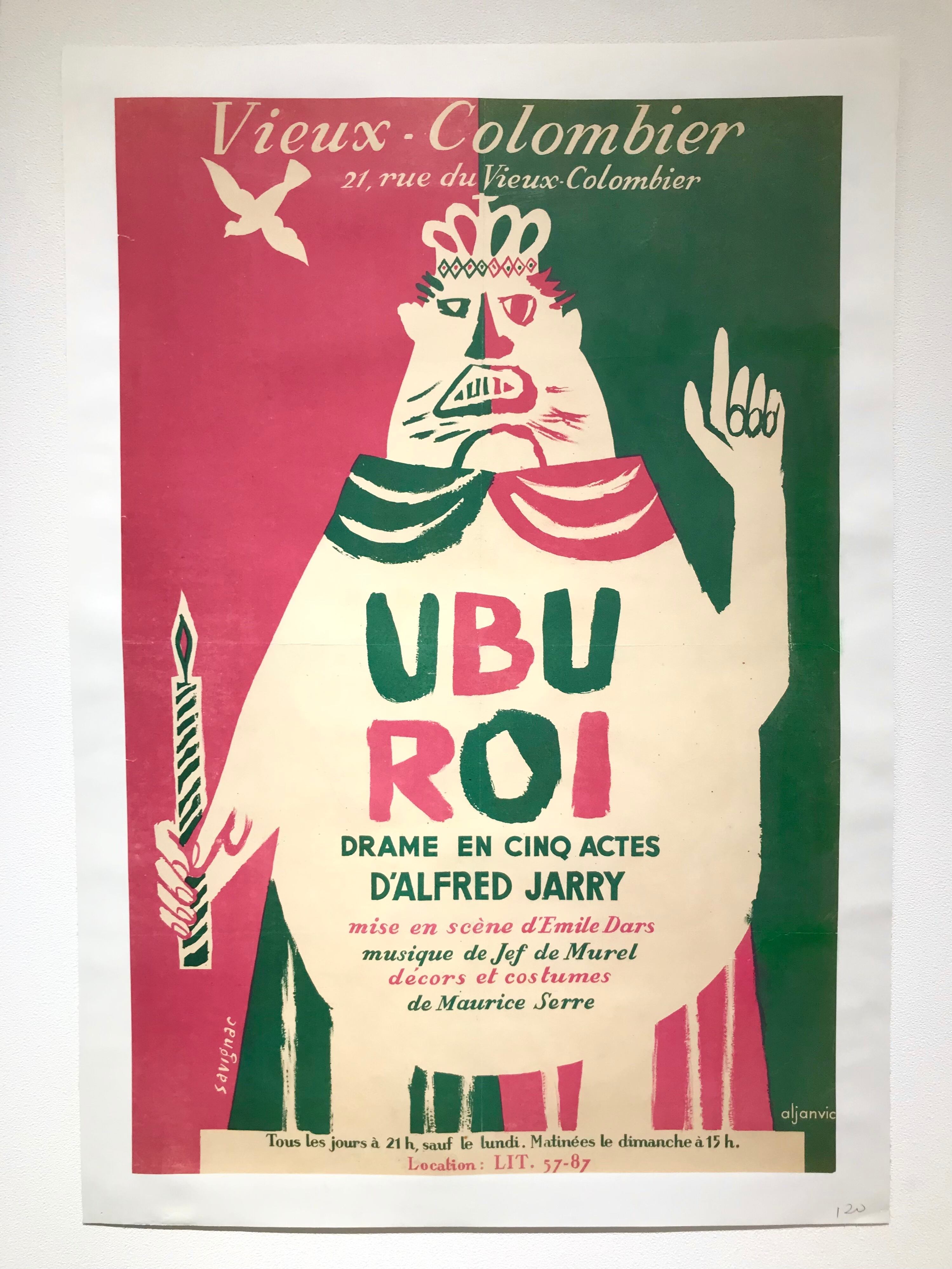 オリジナルビンテージポスター/ 宣伝ポスター Ubu Roi, drame en cinq actes d'Alfred Jary by Savignac